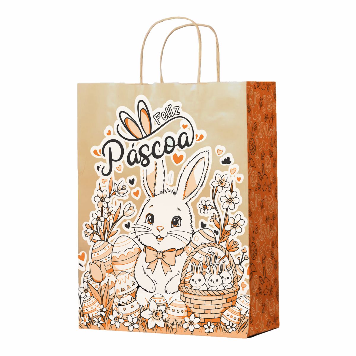 Transforme a entrega dos seus ovos de chocolate, mimos e presentes em uma experiência inesquecível. Nossa Sacola Kraft com alça de Páscoa une a rusticidade elegante do papel kraft com uma estampa exclusiva e delicada.