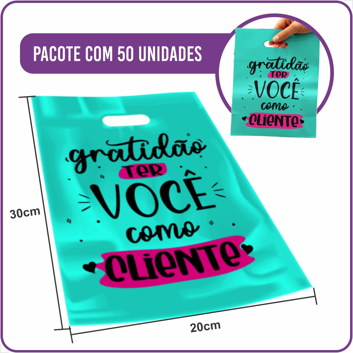 Pacote com 50 Unidades - Plástico Virgem